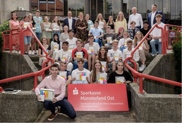 Ausgezeichnet wurden 19 Jugendliche von acht Schulen aus Ahlen, Drensteinfurt und Sendenhorst für ihre Spitzenleistungen in den mathematisch-naturwissenschaftlichen und sprachlichen Fächern sowie in der Gesellschafts- und Wirtschaftslehre. Sie erhielten iPads – und als besondere Überraschung in diesem Jahr – dazu passende Kopfhörer. Neben guten Schulnoten stand bei der Preisvergabe auch die Stärkung sozialer Kompetenzen im Mittelpunkt. Einen Sonderpreis für soziales Engagement nahmen acht Schülerinnen und Schüler entgegen. Zusätzlich konnten die Schulen noch jeweils ein iPad an ausgewählte Schüler überreichen.
